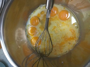 蛋黄里加入牛奶,油,盐,搅打乳化