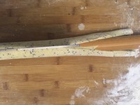 Tip:做咸味时面团一定要和硬一点,水要一点一点的加,擀的过程中撒上一点面粉防沾。甜味的面团可以稍微软一点。尽量用黑白两种芝麻,因为芝麻多了才会更香,但如果都是黑芝麻的话,太多了又影响成品出来的美观。