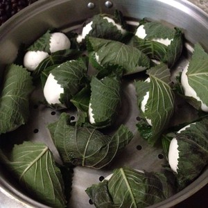 1、准备食材 糯米粉:徐徐加入温水(边加水边搅拌),留下1/5左右干糯米粉。把糯米粉和成面团如图。注意此时面团要干一些 紫苏叶:洗净,用淡盐水浸泡10分钟。再用清水冲去盐份。一叶一叶擦干 红豆沙:我用的是自制的,不喜市售的