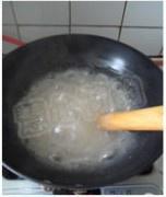 锅里会出现白芯状的生粉糊,用擀面杖朝一个方向,立即快速的搅拌糊糊