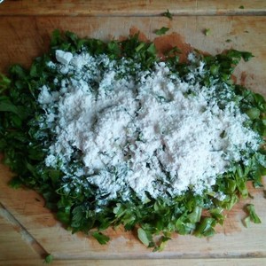 然后用手揉搓,使面粉均匀的裹在每个叶子上,可以稍许用力。