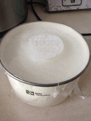 在这个空档把牛奶加热到30--40度左右的样子,我有时候用微波炉转个一分钟,有时候也用热水烫一下,总之能把牛奶加热就行了,温温的,不要烫手。我这样的牛奶用5袋正好是一升。