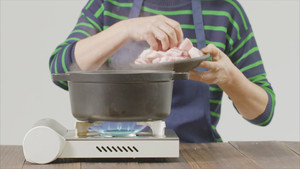 等肉色变得微微焦黄时,加红糟、生抽、米酒、盐调味;