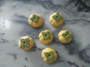 南瓜泥,面粉,白糖,酵母粉和成团(1号材料) 菠菜粉,面粉,酵母粉,水和成团(2号材料) 此方还是一发的做法, 6个杮子的量,个人偏好小巧一些啊?