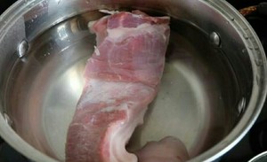 1、猪五花肉洗净,整块,冷水下锅,开水后煮3分钟左右去血沫;