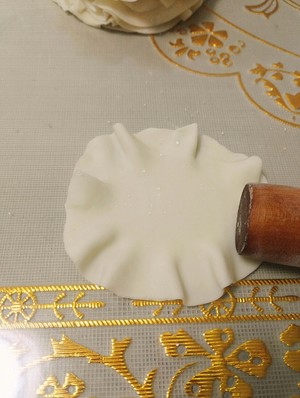 用擀面杖将饺子皮最外层擀一下,形成花边,主要是想烧卖漂亮点,不在乎颜值的可省略这一步
