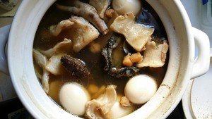 Tip:花胶,鲍鱼,海参都需要提早发制好的。如果喜欢吃一条条海参的朋友,海参可以到最后半个小时放入发制好的海参。如果跟汤一起炖基本上海参就已经炖到汤里去了。 吃货们这个要小心哦。