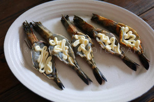 将美的烤箱预热至180度,放入明虾,中层上下火烤8-10分钟;