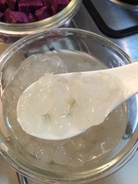 最后加入紫薯丁,我不喜欢紫薯煮的烂糊糊的,一颗颗吃到嘴巴里才最棒!