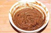 放入搅拌机中打成泥状,我用的是搅拌棒,直接伸到装去核去皮大枣的容器中搅打成枣泥即可。也可以将煮好的去皮去核的大枣放入保鲜袋中用擀面杖擀成泥