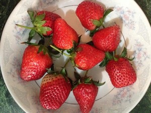把带着草莓绿色帽子的那头切掉一部分!就是白色没有味道的那部分切掉!