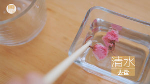 (厨娘TIPS:盐渍樱花顾名思义就是用盐盐渍过的樱花。樱花花期很短且容易腐烂,勤劳智慧的人们发明了盐渍的方法,让樱花能长时间保存。使用之前要记得去除表面的盐分哦~用热水泡开又会变成新鲜樱花的样子了!)
