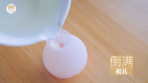 盖上模具的盖子,再用漏斗把白凉粉液体倒满模具,静置1小时倒出。(急的话放入冰箱冷藏,会凉的更快些)