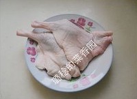鸭肉丝放盐半勺、淀粉一勺、酱油一勺、五香粉一勺,抓匀码味