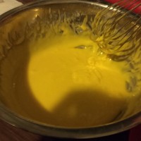 蛋白分三次和蛋黄面糊混合,这个过程要快,以免蛋白消泡。因为太快了,来不及照相,所以这个过程无图。
