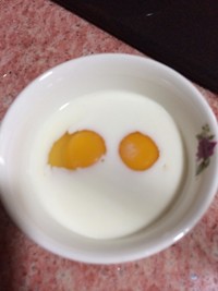 将鸡蛋放在小碗里,加入10ml牛奶,适量加入少许糖和盐调味(也可不加,鸡蛋原汁原味),早上不宜进食过甜或过咸的食物。用筷子将蛋黄打开,搅拌均匀。