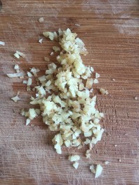将萝卜丝和土豆丝放在案板上再切碎一点