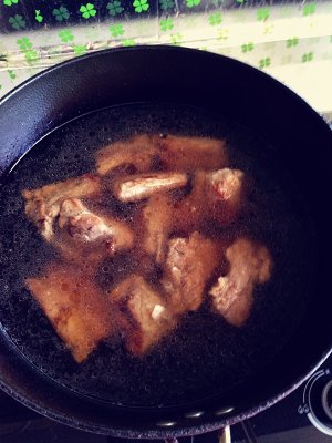 将排骨洗净,清水浸泡2小时,倒去血水,放入清水大火煮至浮沫出来,将排骨捞出。