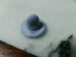 小帽子,搓两个小圆,一个压扁,一个搓圆柱形,沾水粘牢。