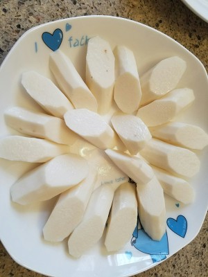 山药一根,洗干净切好(本人用的鸡皮山药,更适合老人、孩子吃)。