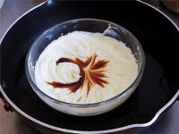 倒好后,在表面用筷子轻轻划开,使两种面糊混合,呈现大理石的纹路