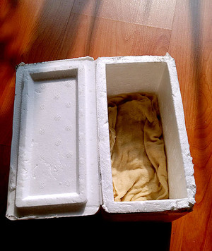 ↑ ↓ 盖上纱布放在温暖的地方等待发芽。(我家里有暖气就放在暖气旁,不能离暖气太近也是容易坏掉的)