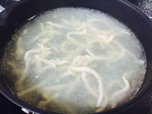 将腌制的肉丝放进开水锅里烫30秒即可捞出来