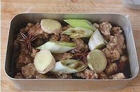 将炸好的酥肉放入一个容易导热的器具中放入葱段、姜片、花椒粉、1小勺料酒、2小勺酱油、八角、桂皮,再倒入清水到肉的一半的位置,喜欢汤汁多的可以多放一些;如果容器没有盖子,整好后也会有很多蒸汽水落下来,汤汁也会很多。所以盖不该上都可以,凭自己的喜欢就可以