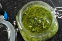 将打好未加奶酪的青酱转移到密封罐里