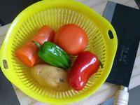 腊肉、香肠、土豆 、胡萝卜切丁,准备好配菜