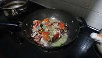 Tip:斩件时有液体流出,这是龙虾血,可以在焗得差不多的时候倒上,不要翻动哦。 全程大火,焗的时候也不要小火。 也可以炒虾、蟹、鸡。炒鸡的话焗的时候要小火,时间长一点。