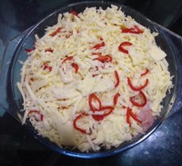 放入微波炉,用烧烤档烤15分钟,要注意芝士的颜色,不要太焦了。