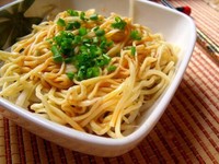 Tip:1.四川凉面是用机制碱水面,颜色发黄。老实说我试过只用碱水,色泽的深度比不上市售的。一直怀疑里面是不是加了色素....所以这次继续靠鸡蛋黄增色好了。 2.四川的小饭馆消夏套餐就是凉面、稀饭、咸菜和咸蛋一枚。 3.面条煮好后千万不要过凉水!