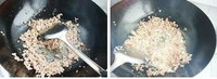 炒锅烧热,放入适量的油,再放入猪肉末炒散,放入姜末和蒜末炒香,将猪肉末中的油炒出来
