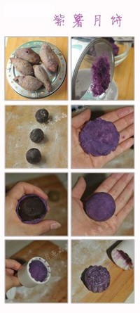 Tip:1.紫薯蒸熟过筛就可以直接用来月饼皮,当然也可以用来做月饼馅,自由发挥么。不要加任何的糖或者奶,加了液体会太粘,那样就只能搓圆了吃,别想再用模具刻好看的样子出来了,会粘在模具壁上。 2.馅料我是用自己做的豆沙馅和莲蓉馅,做法点这里:红豆沙和莲蓉馅 3.材料中用到的糕粉:就是炒熟的糯米粉,主要作用是月饼入模成型的时候防粘。糕粉的制作:把生糯米粉放在炒锅里用小火炒到略微发黄就可以了。