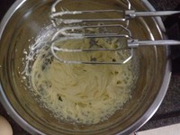 50克黄油室温软化后,加入40克糖粉、8克玉米油搅拌打发