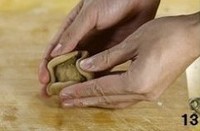 把馅料和饼皮面团分成小份。馅料与饼皮的重量比例为4:6。比如制作100克重的月饼,则将馅料分为40克一个,饼皮分为60克一个。请根据你的月饼模大小来分配